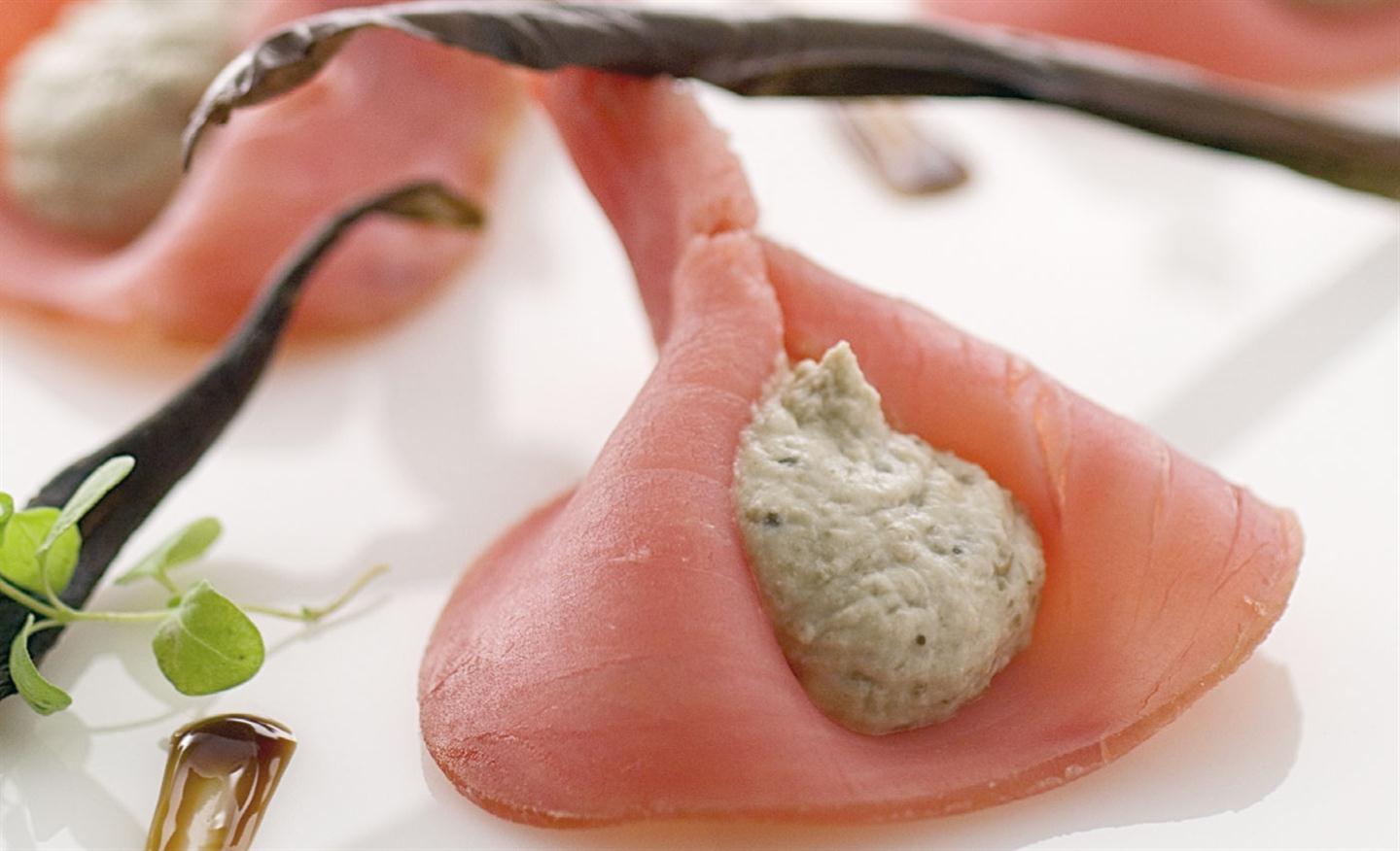 Arrange the eggplants in a dish and place in the oven at 190°C for 40 minutes. Once cooked, peel the skins and arrange them in a collander so to eliminate the excess water. Blend the eggplant and add the cheese, parsley and chopped garlic, sprinkle with salt and pepper and tabasco. If the mixture is too thick add olive oil. For the balsamic reduction: place the sugar and vinegar in a pot and reduce to the density desired. Spread the mixture onto the slices “4 per person”. Serve the plate with balsamic sauce.